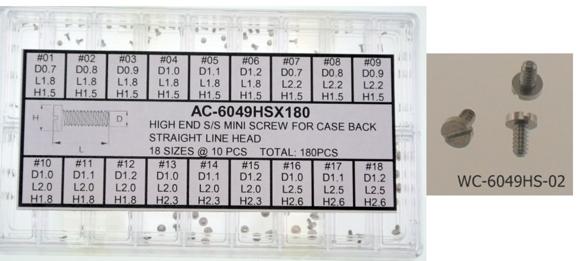 High End S/S Screw For Case Back Straight Line Head @10pcs, Total 18 Sizes And 180pcs