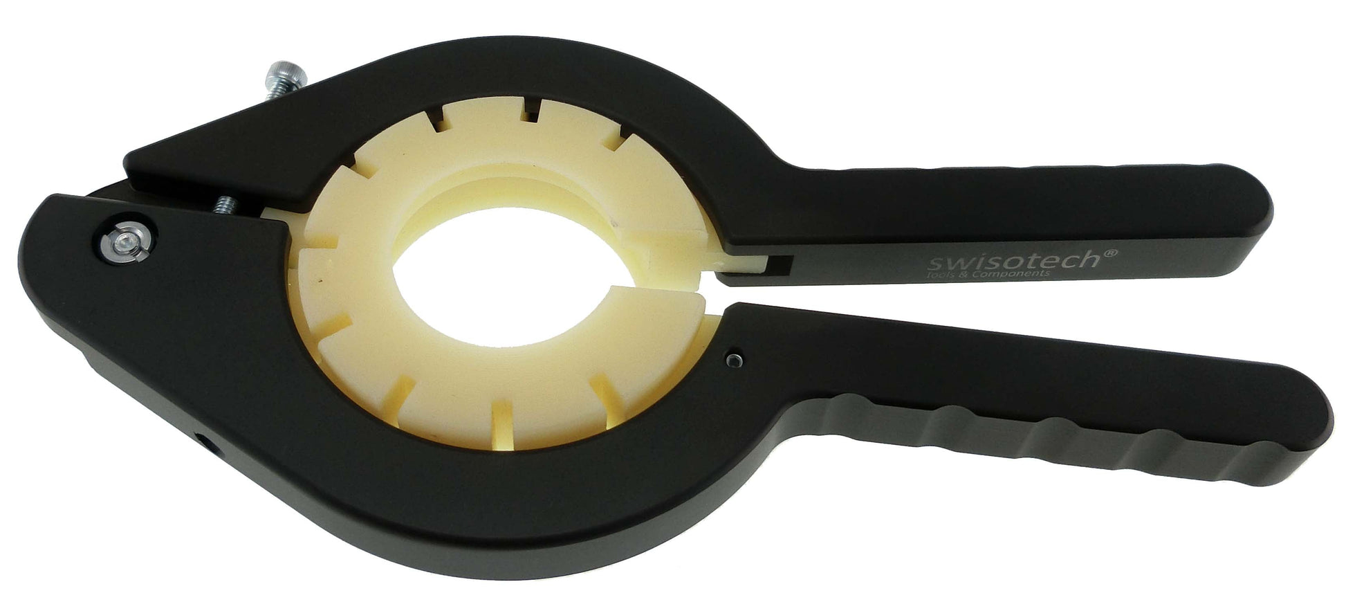Bezel remover with handle made of anodized aluminium, ring made of elastomer dia.30-50mm. Length: 20mm Weight: 290g